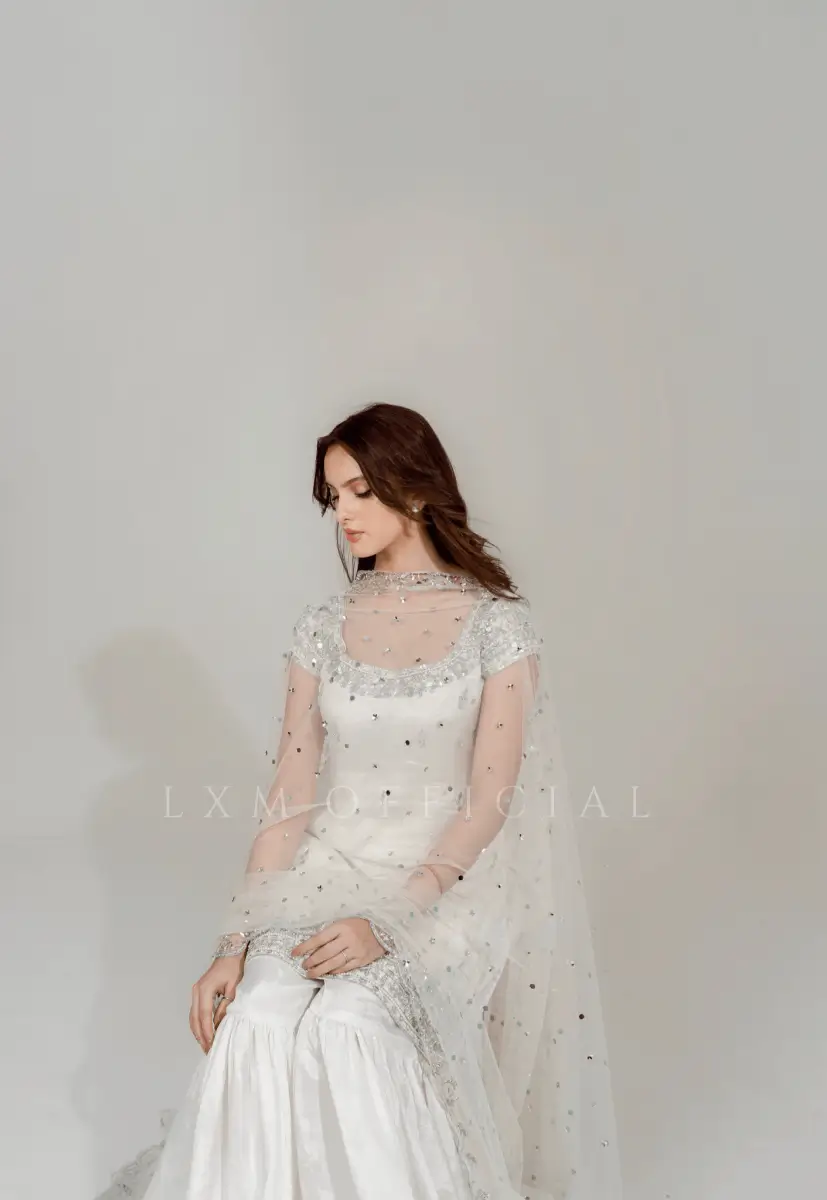 Be the first to review “White Gharara outfit with hand embroidery” Cancel reply